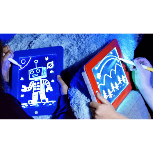 - MagicPad™ is the amazing, tablet-style drawing pad that lights up to illuminate your child’s artwork. With 8 different light effects, it sparks creativity and makes learning fun. Comes with 3 dual-sided neon pens; 30 stencils with pictures and games; an eraser; a fun guide, and a glow boost card that brings the neon artwork to life. Perfect for use at home or while traveling, the reusable pad easily wipes clean. Req. 3 “AAA” batteries (sold separately). Plastic. 7 1/2″ x 10″H. Ages 3+.
