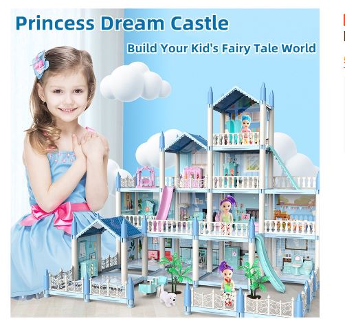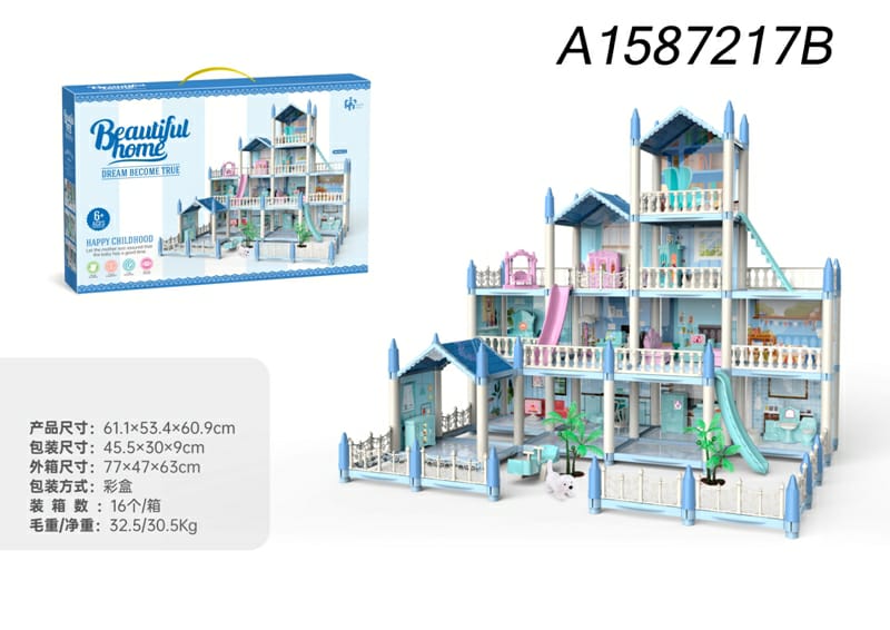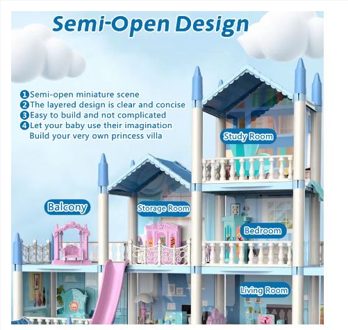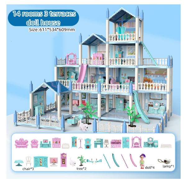 4 Storey Big Princess Dream Villa Dollhouse- Blue