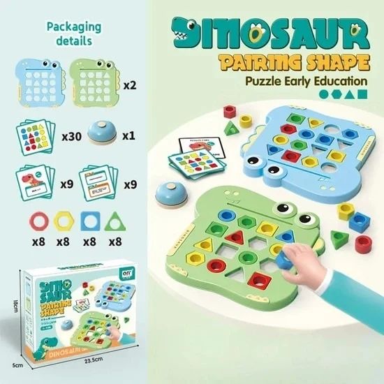 Dinosaur Pairing Shape Puzzle Game – 2 Game Bords with Bell