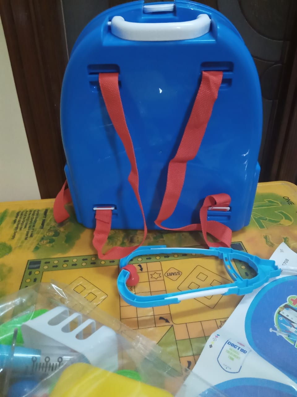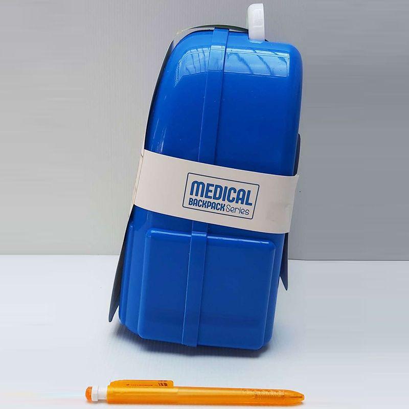 - Doctor toys with medical equipment are stored in the backpack race