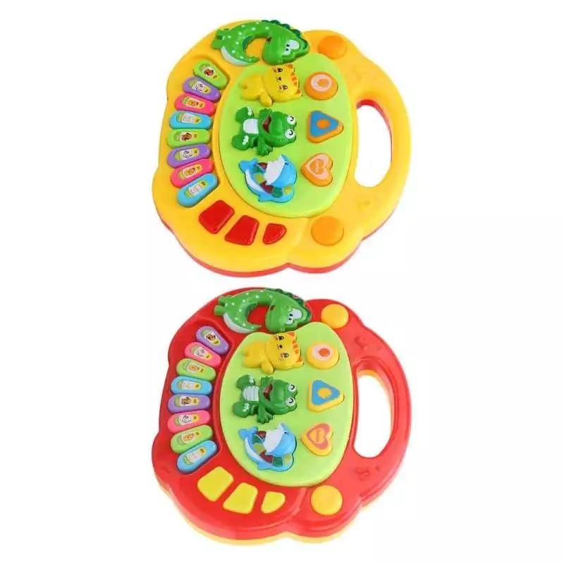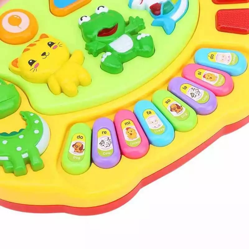 - Child’s animal ranch piano music toy, upper part with handle, and animals button. Infant can figure out how to perceive various tones, preparing shading acknowledgment capacity, impression of rich and brilliant world.