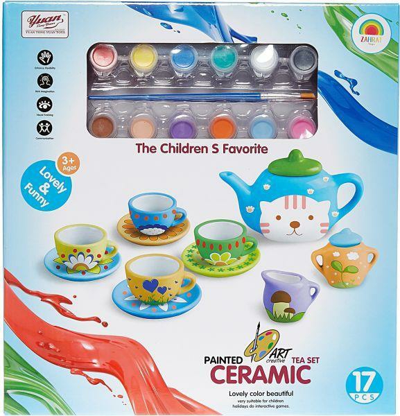 Painted Ceramic Art Tea Set 17 Pieces 3+ Ages