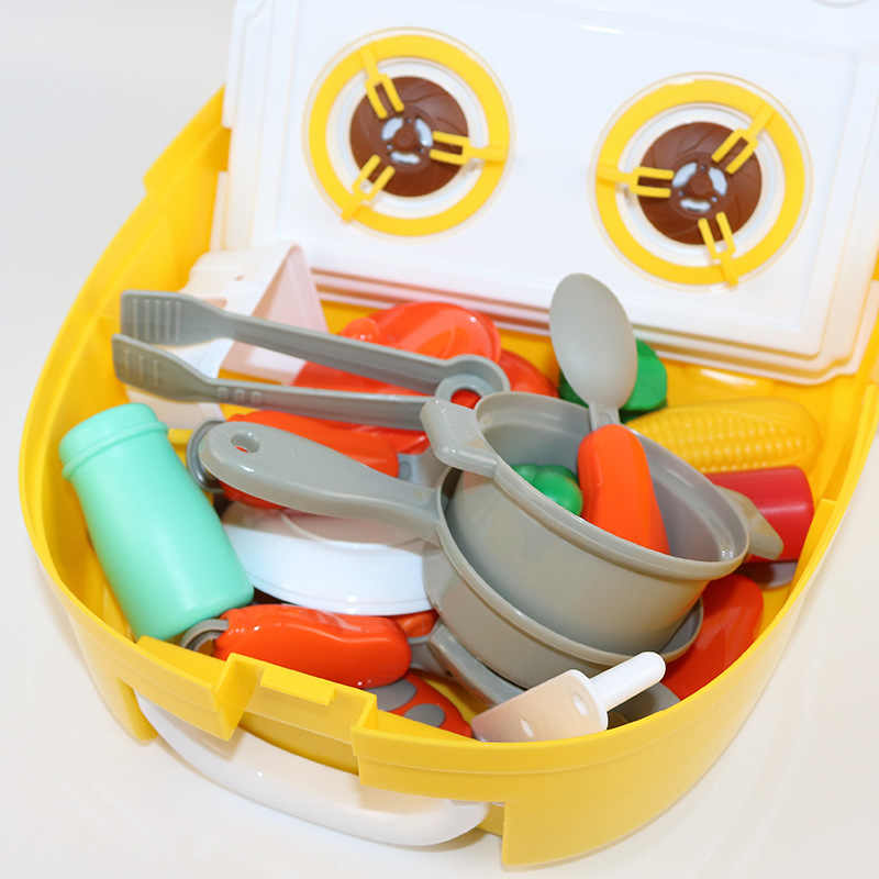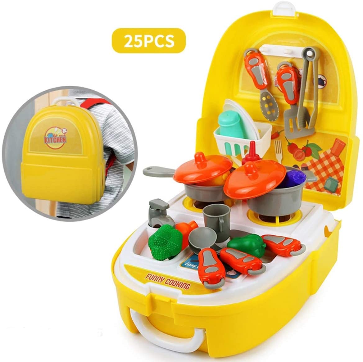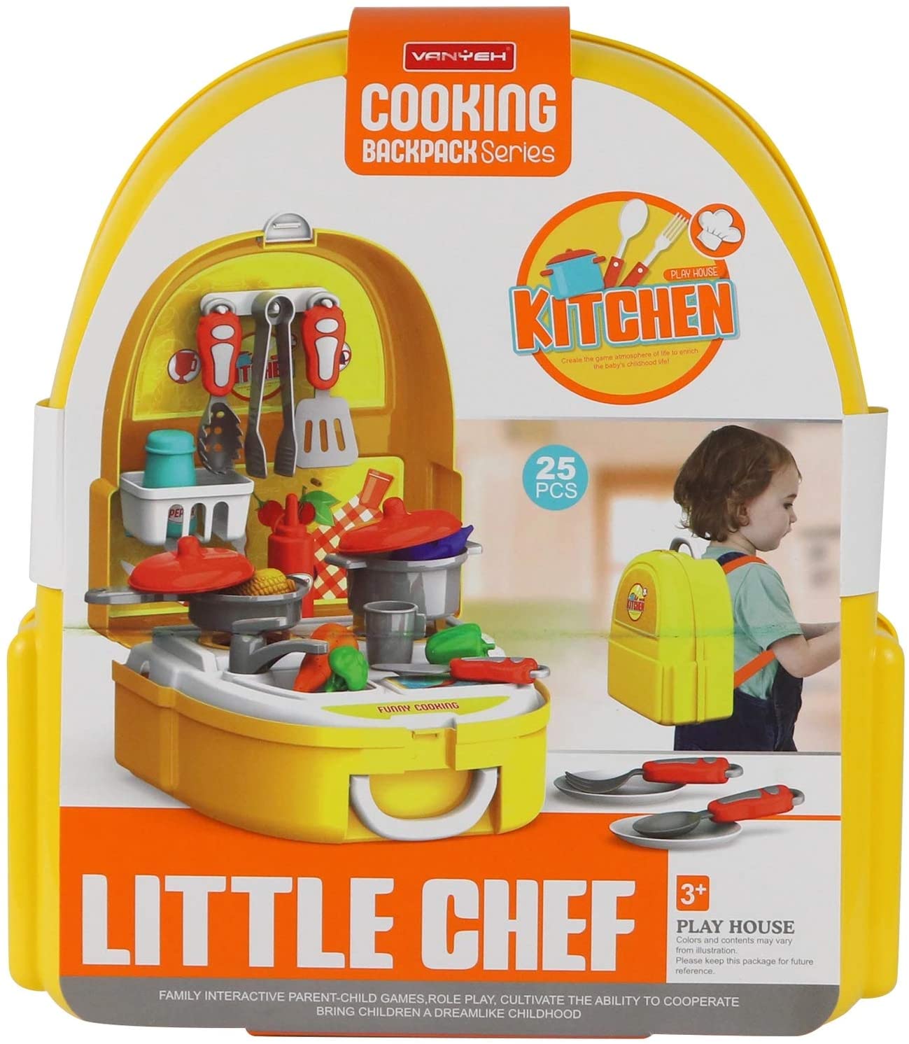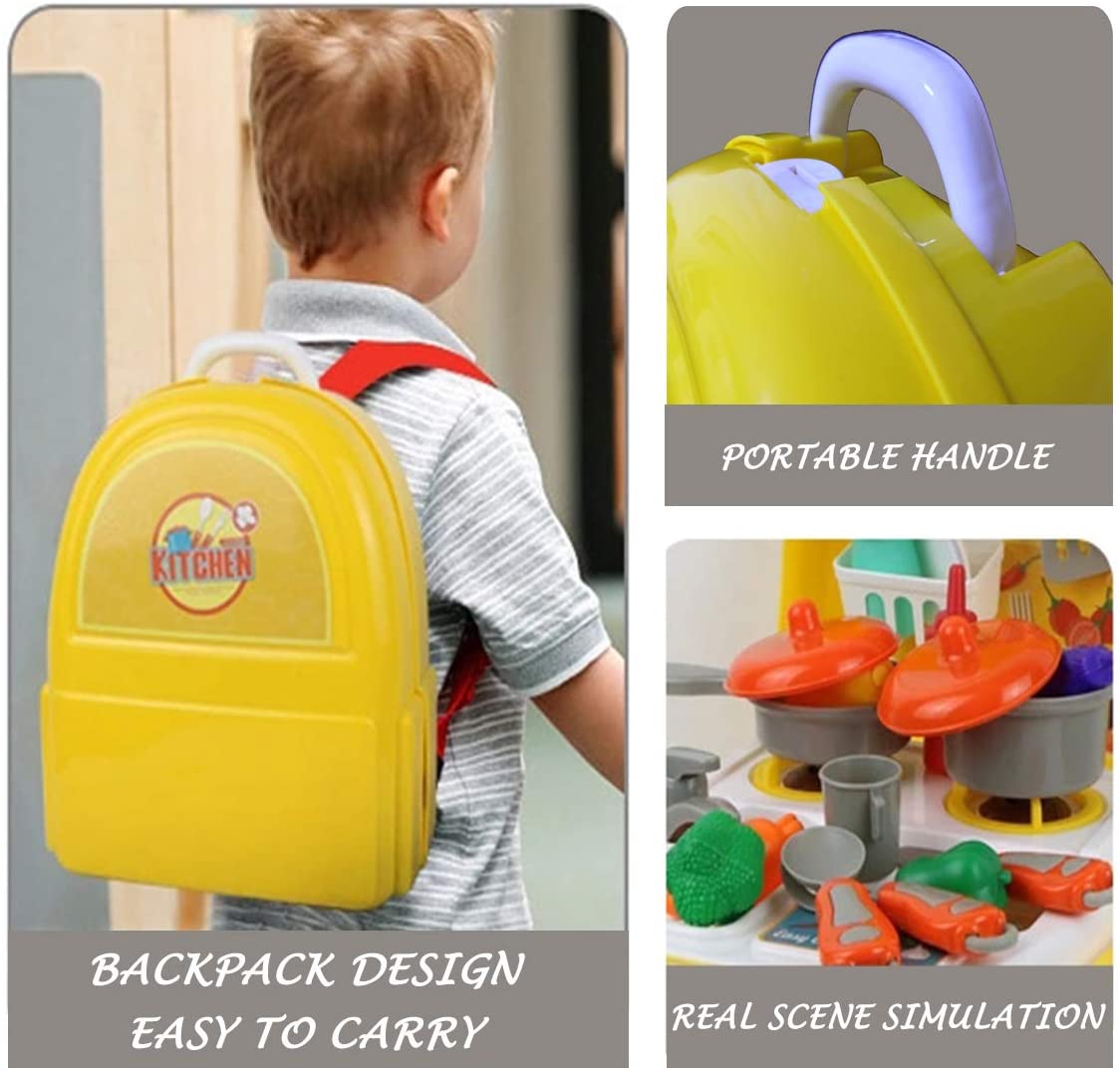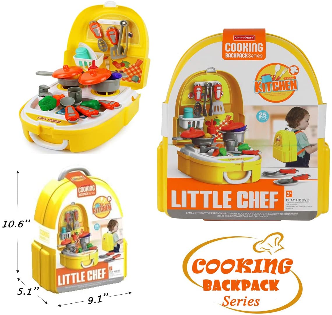 • Little Chef Kitchen portable Backpack Pretend cooking Game toy set come with 23 pcs exquisite accessories is good for educational & creativity for your kids.